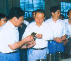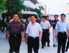 | 梁省長(zhǎng)(前左一)在董事長(zhǎng)陪同下視察企業(yè) | 原副省長(zhǎng)俞興德到生產(chǎn)車(chē)間視察工作 |