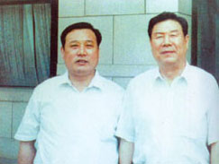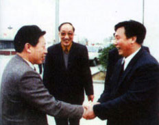 | 社會(huì)保障部鄭部長(zhǎng)(右一)在北京親切接見(jiàn)董事長(zhǎng) | 廣電部孫部長(zhǎng)(左一)來(lái)公司視察工作 |